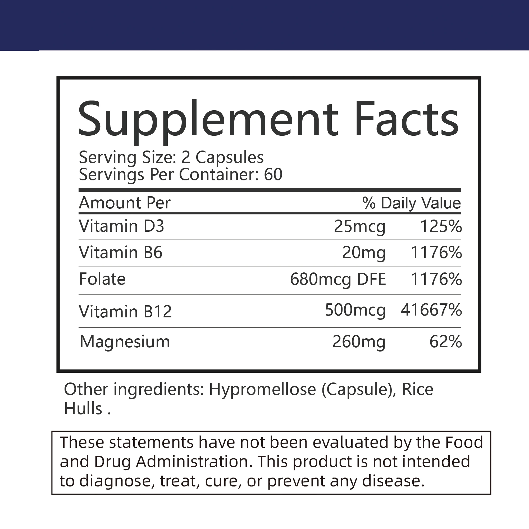 Ingredients: Vitamin D3, B6, B12